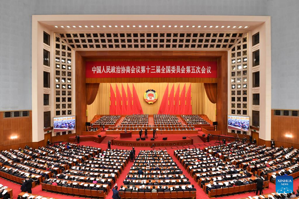 The second plenary meeting of the fifth session of the 13th National Committee of the Chinese People's Political Consultative Conference (CPPCC) is held at the Great Hall of the People in Beijing, capital of China, March 7, 2022. (Xinhua/Yin Gang)