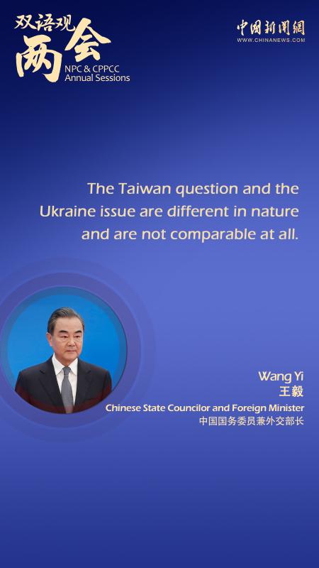 Taiwan question differs in nature from Ukraine issue: Chinese FM
