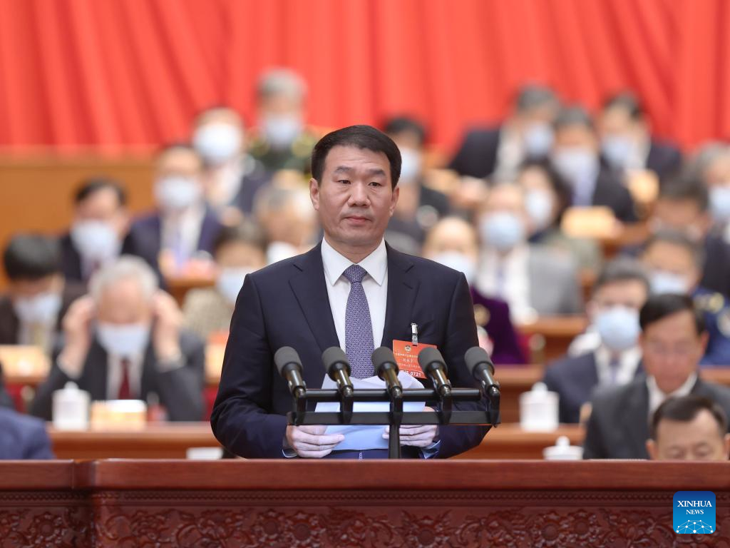 Sun Dongsheng, a member of the 13th National Committee of the Chinese People's Political Consultative Conference (CPPCC), delivers a speech at the second plenary meeting of the fifth session of the 13th CPPCC National Committee at the Great Hall of the People in Beijing, capital of China, March 7, 2022. (Xinhua/Li Xiang)