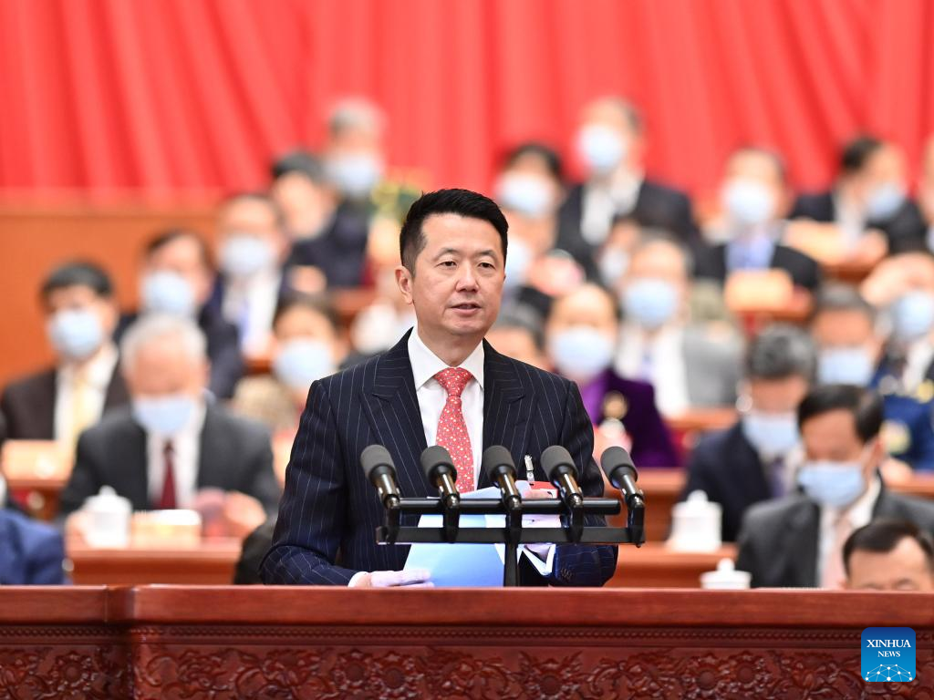 Liu Zhendong, a member of the 13th National Committee of the Chinese People's Political Consultative Conference (CPPCC), delivers a speech on behalf of the All-China Federation of Industry and Commerce at the second plenary meeting of the fifth session of the 13th CPPCC National Committee at the Great Hall of the People in Beijing, capital of China, March 7, 2022. (Xinhua/Ding Lin)