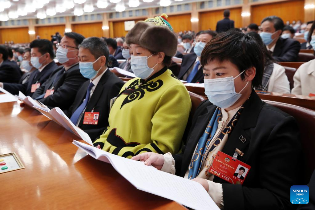 Members of the 13th National Committee of the Chinese People's Political Consultative Conference (CPPCC) attend the second plenary meeting of the fifth session of the 13th CPPCC National Committee at the Great Hall of the People in Beijing, capital of China, March 7, 2022. (Xinhua/Jin Liwang)