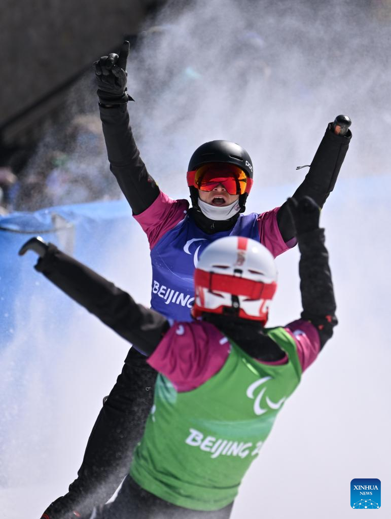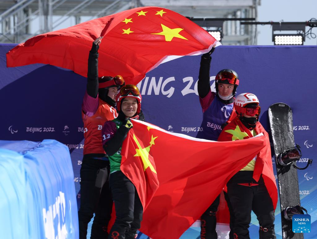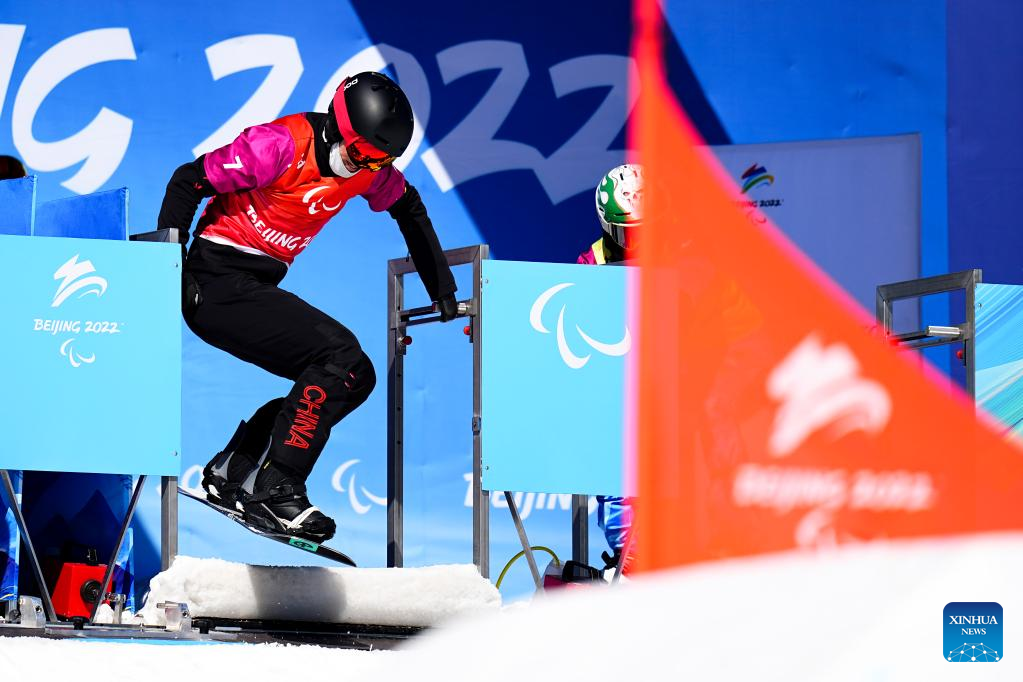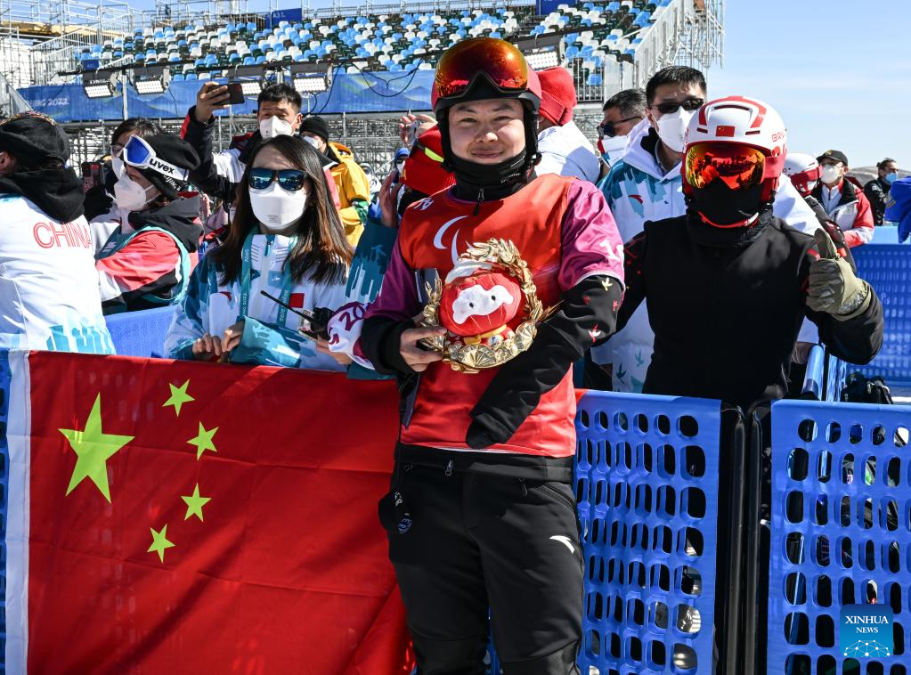CHONGLI, Zhangjiakou, March 7 (Xinhua) -- Host nation China made a clean sweep of Para snowboard men's cross SB-UL medals at Beijing 2022 here on Monday, with Ji Lijia topping the podium.