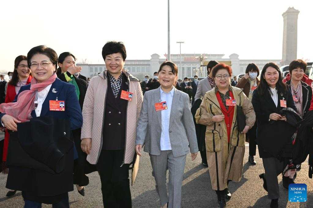 Deputies arrive for the second plenary meeting of the fifth session of the 13th National People's Congress (NPC) in Beijing, capital of China, March 8, 2022. (Xinhua/Jin Liangkuai)