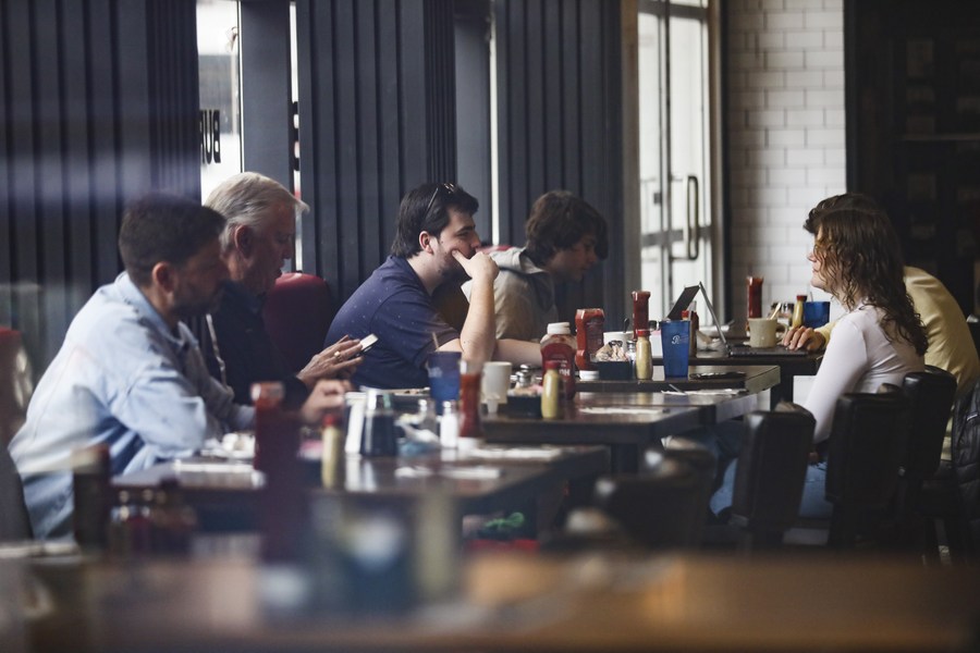 People have meals at a restaurant in New York, the United States, March 7, 2022. (Xinhua/Wang Ying)
