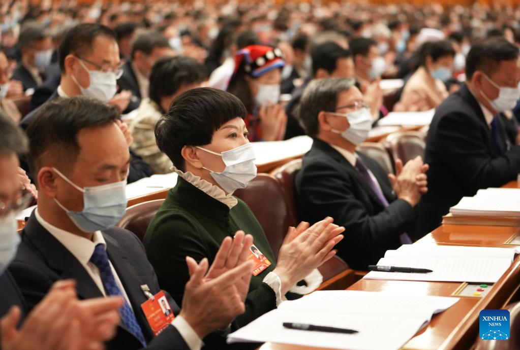 Liu Xiya attends the opening meeting of the fifth session of the 13th National People's Congress (NPC) at the Great Hall of the People in Beijing, capital of China, March 5, 2022.