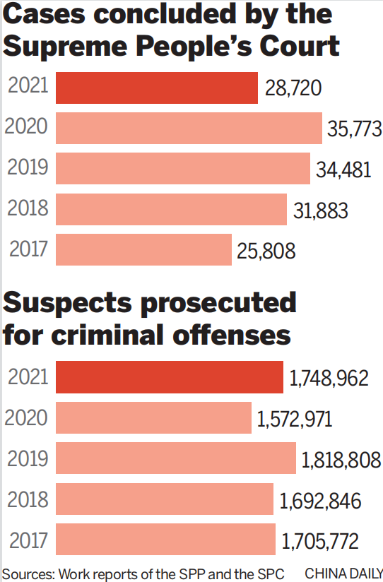 The rising number of cases handled by prosecutors and judges reflects the legal strength of China's Civil Code-a fundamental and comprehensive code that highlights the protection of personality rights and took effect on Jan 1, 2021-and the Personal Information Protection Law that took effect on Nov 1, 2021, according to He Xiaorong, vice-president of the SPC.