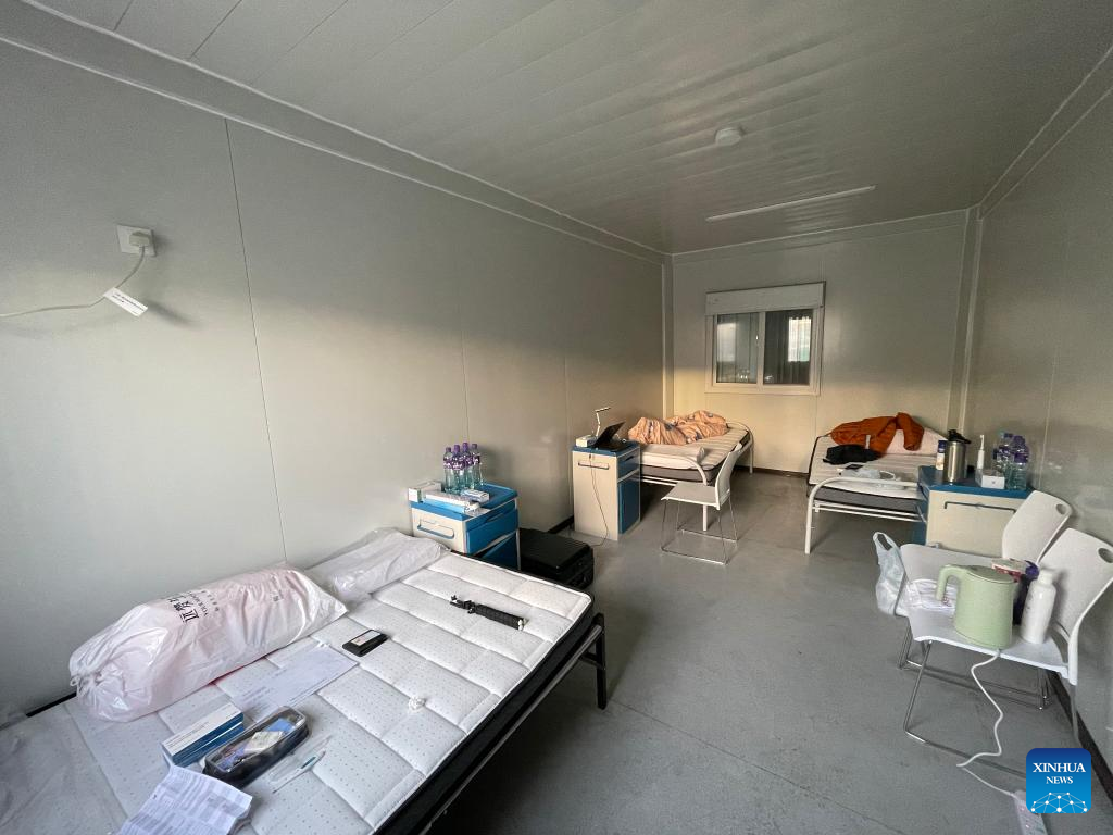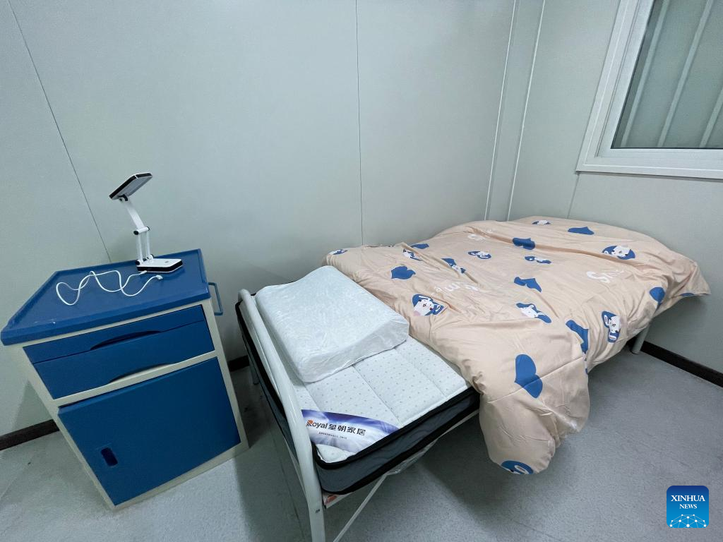 Photo taken on March 8, 2022 shows an isolation room of a community isolation facility (CIF) in San Tin Tsuen Road, Yuen Long, south China's Hong Kong. The second community isolation facility (CIF) in Hong Kong constructed with the support from the mainland will start operation after it was handed over to the Hong Kong Special Administrative Region (HKSAR) government on Wednesday. (Xinhua)