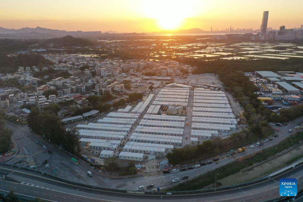 Aerial photo taken on March 7, 2022 shows a community isolation facility (CIF) in San Tin Tsuen Road, Yuen Long, south China's Hong Kong. The second community isolation facility (CIF) in Hong Kong constructed with the support from the mainland will start operation after it was handed over to the Hong Kong Special Administrative Region (HKSAR) government on Wednesday. (Xinhua)