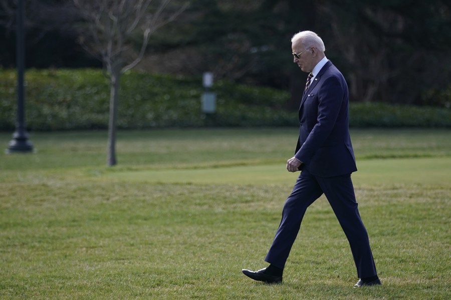 U.S. President Joe Biden leaves the White House in Washington, D.C. March 8, 2022. (Photo by Ting Shen/Xinhua)