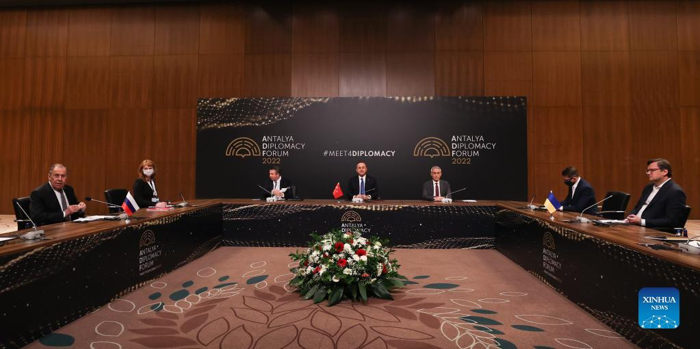 ANTALYA, Turkey, March 10 (Xinhua) -- Russian Foreign Minister Sergey Lavrov and his Ukrainian counterpart Dmytro Kuleba are meeting in a small resort town in Turkey's southern province of Antalya, local media reported on Thursday.