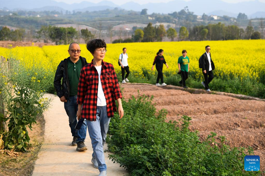 Tourists visit Guangyang Isle in southwest China's Chongqing on March 10, 2022. Guangyang Isle, the largest island on the upper Yangtze River, is rich in natural resources. In recent years, a series of measures have been taken to restore the natural ecological environment of the island. Now, the island attracts a large number of tourists every spring. (Xinhua/Wang Quanchao)