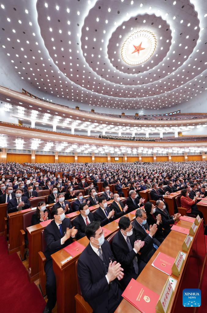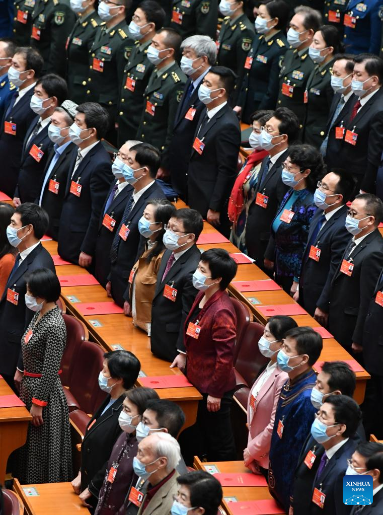 The closing meeting of the fifth session of the 13th National People's Congress (NPC) is held at the Great Hall of the People in Beijing, capital of China, March 11, 2022. Leaders of the Communist Party of China and the state Xi Jinping, Li Keqiang, Wang Yang, Wang Huning, Zhao Leji, Han Zheng and Wang Qishan attended the meeting, and Li Zhanshu presided over the closing meeting and delivered a speech. (Xinhua/Huang Jingwen)