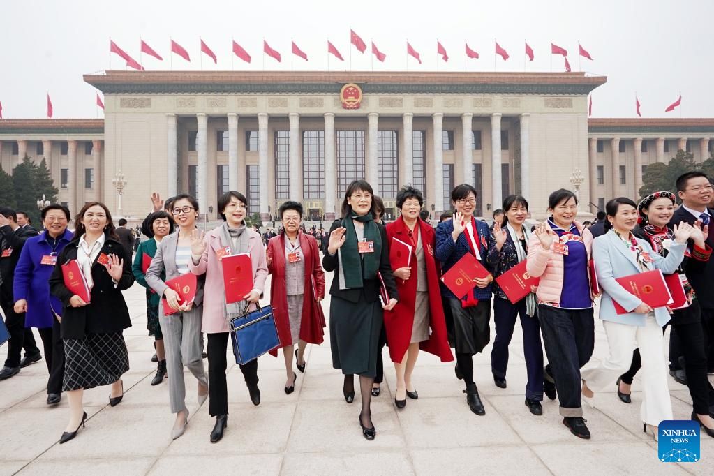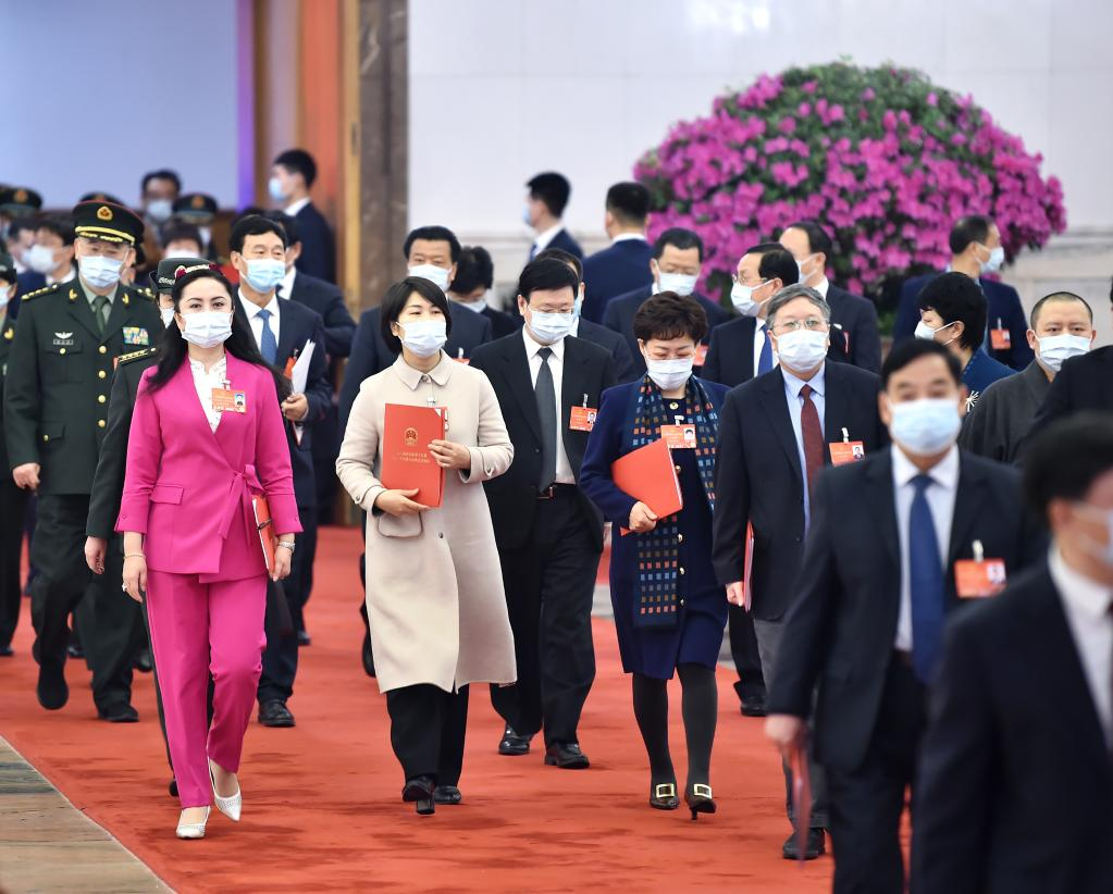 Deputies to the 13th National People's Congress (NPC) leave the Great Hall of the People after the closing meeting of the fifth session of the 13th NPC in Beijing, capital of China, March 11, 2022. (Xinhua/Chen Zhonghao)