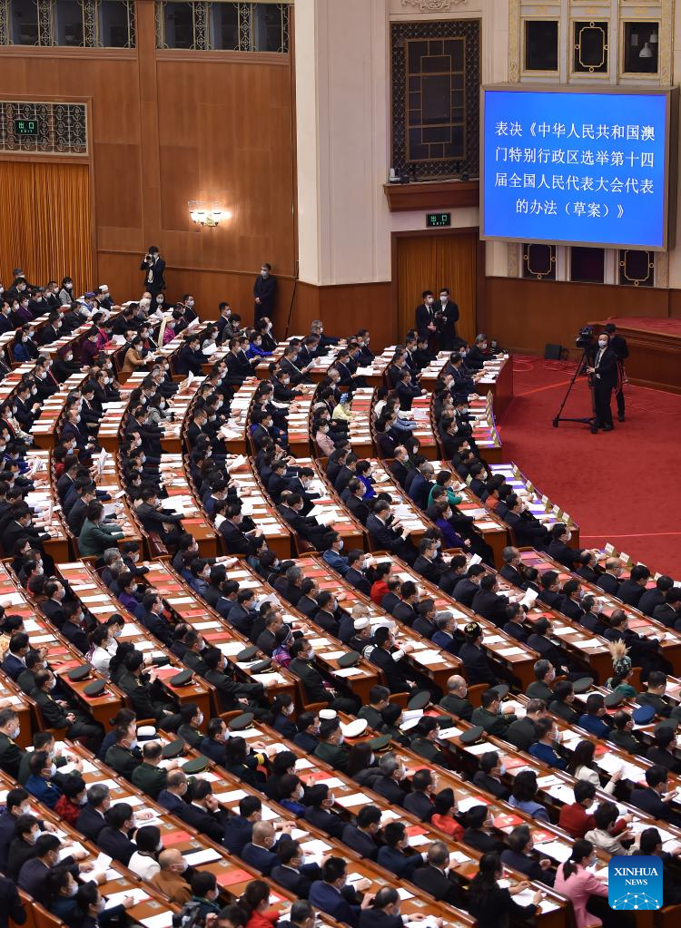 The meeting adopted a decision on the quota and election of deputies to the 14th NPC, the method for the Hong Kong Special Administrative Region (SAR) to elect its deputies to the 14th NPC, as well as the method for the Macao SAR. According to the decision, the election of deputies shall be completed in January 2023.