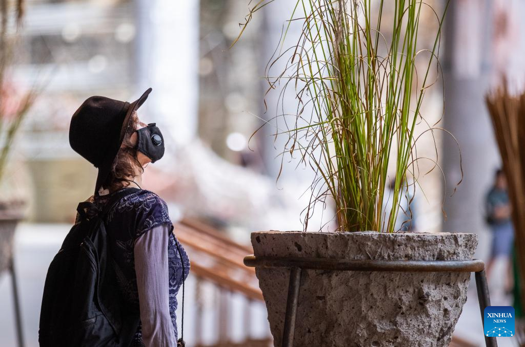A woman visits Biennale of Sydney "rivus" at Art Gallery of New South Wales (NSW) in Sydney, Australia, on March 13, 2022. The 23rd Biennale of Sydney is held from March 12 to June 13, with more than 330 artworks by over 80 participants presented during the event. (Photo by Hu Jingchen/Xinhua)