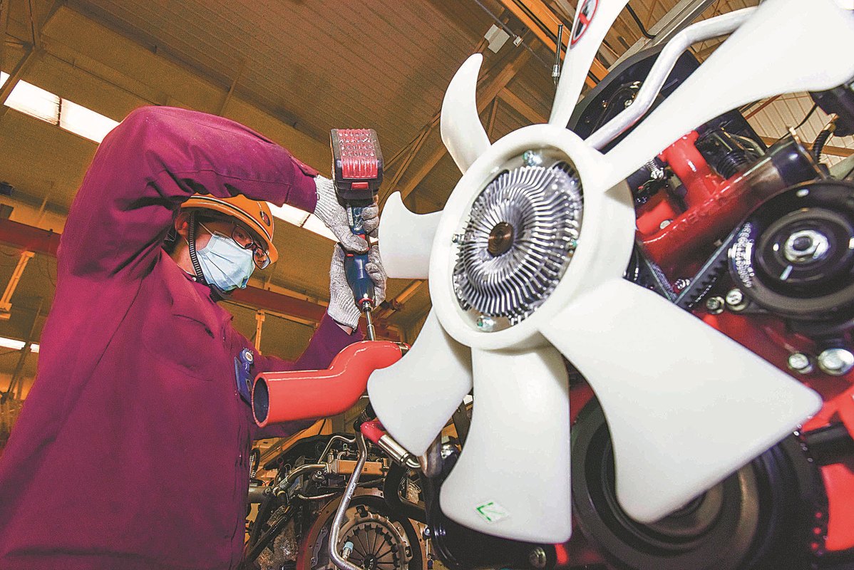 An employee works at a vehicle production facility in Qingzhou, Shandong province. [Photo by Wang Jilin/For China Daily]