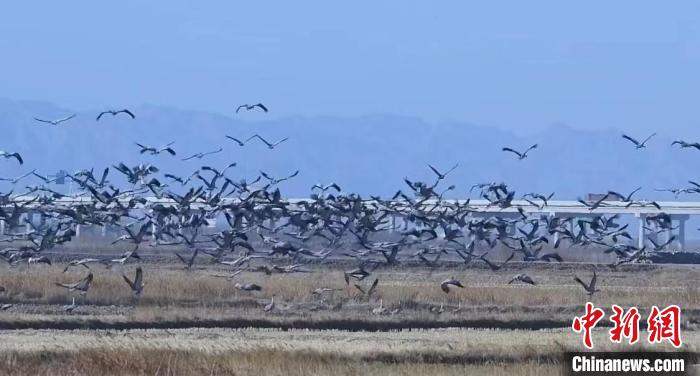 Thousands of grey cranes have been seen in a county in northwest China's Ningxia Hui Autonomous Region in recent days, with the increasing number of migratory birds in Ningxia epitomizing improvements to the local ecological environment.