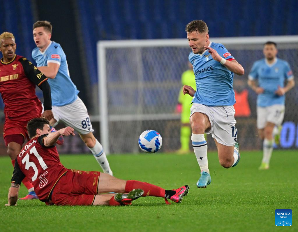 Lazio's Ciro Immobile celebrates his goal during a Serie A football match between Lazio and Venezia in Rome, Italy, March 14, 2022. (Photo by Alberto Lingria/Xinhua)