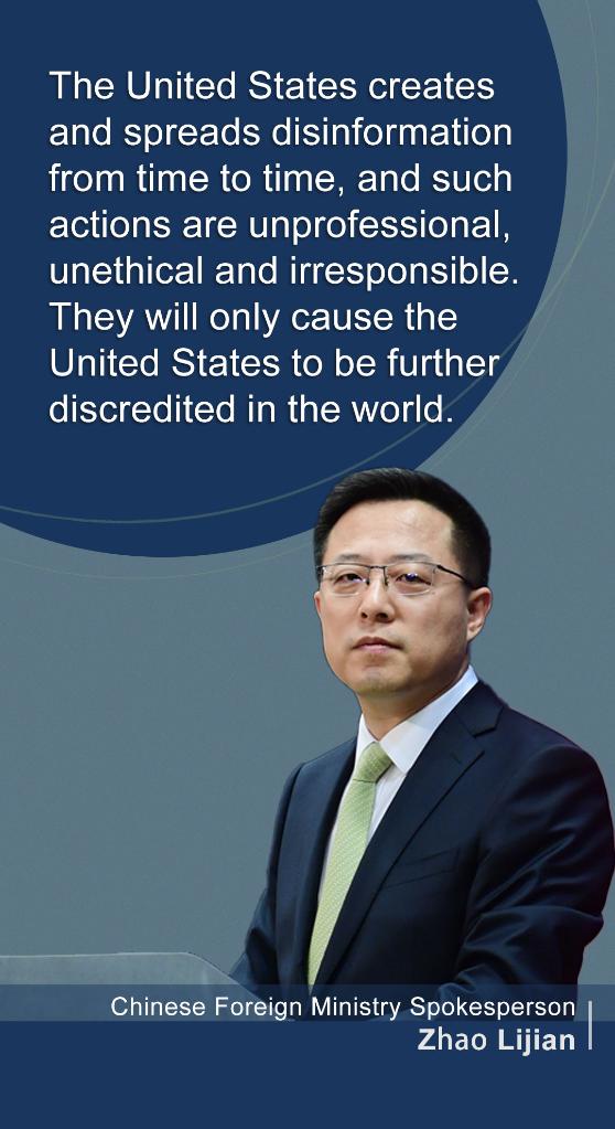 Noting that Russia has denied asking China for military assistance, Zhao said that the United States creates and spreads disinformation from time to time, and such actions are unprofessional, unethical and irresponsible.