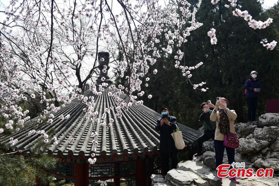 Photo shows blooming peach flowers at Beihai Park in Beijing, capital of China, March 15, 2022. (Photo:China News Service/Tian Yuhao)