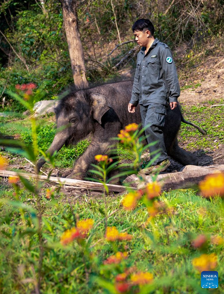 The Asian Elephant Breeding and Rescue Center has successfully rescued more than 20 wild Asian elephants since its establishment in 2008. (Xinhua/Cao Mengyao)