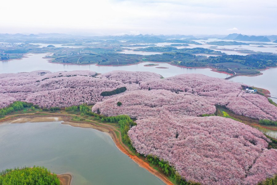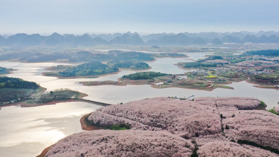 700,000 cherry trees in full blossom in SW China's Guizhou