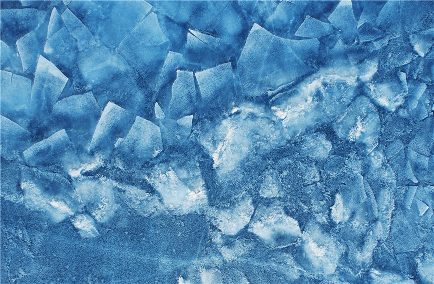 Frozen during winter, the Bosten Lake in northwest China's Xinjiang Uygur Autonomous Region starts thawing as temperatures rise, leaving cracks on its icy surface. (Photo/Ayabatu)