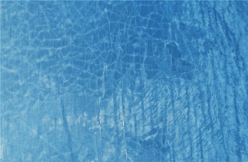 Frozen during winter, the Bosten Lake in northwest China's Xinjiang Uygur Autonomous Region starts thawing as temperatures rise, leaving cracks on its icy surface. (Photo/Ayabatu)