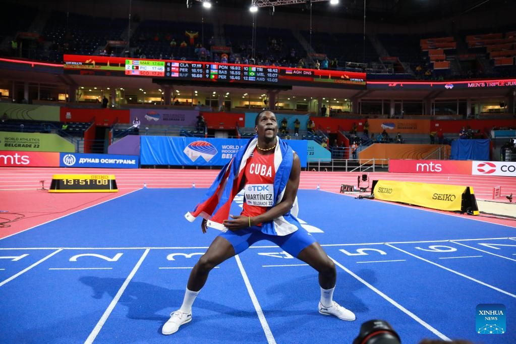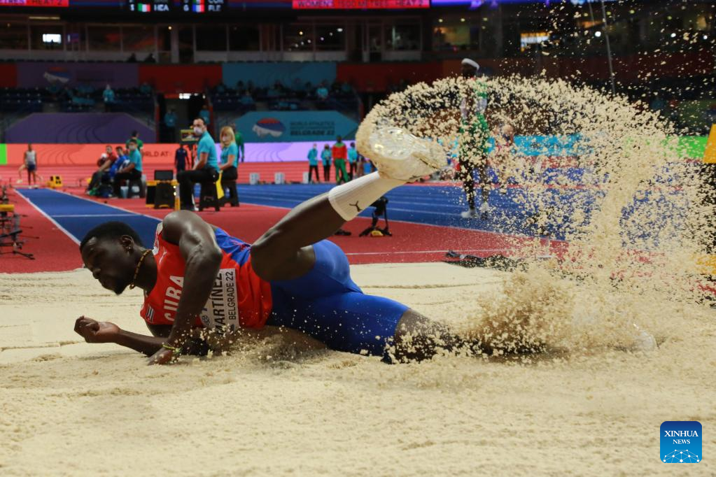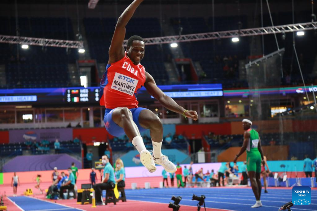 Lazaro Martinez of Cuba competes during the men's triple jump final at the World Athletics Indoor Championships Belgrade 2022 in Stark Arena, Belgrade, Serbia, March 18, 2022. (Xinhua/Shi Zhongyu)
