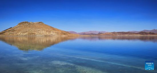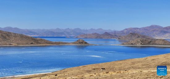 Photo taken with a mobile phone shows the scenery of the Yamzbog Yumco Lake in Shannan, southwest China's Tibet Autonomous Region, March 19, 2022. (Xinhua/Shen Hongbing)
