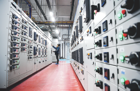 An employee checks equipment at the data center of China Unicom in Zhongwei, Ningxia Hui autonomous region, on March 1. China made fresh digital breakthroughs last year. WANG PENG/XINHUA