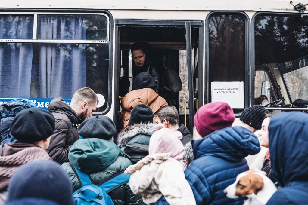 People board a bus in Irpin, Ukraine, March 5, 2022. (Photo/Xinhua)