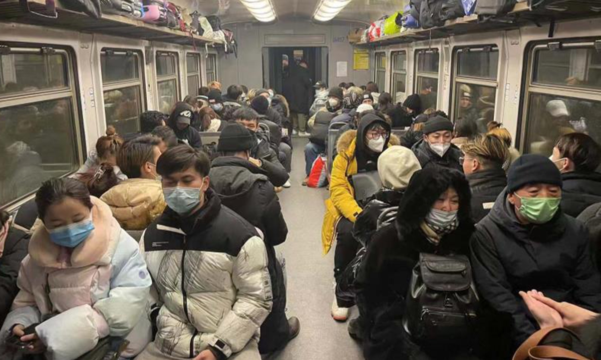 Chinese students on a train to Lviv, western Ukraine on March 9, 2022 Photo: Courtesy of the Chinese Embassy in Ukraine