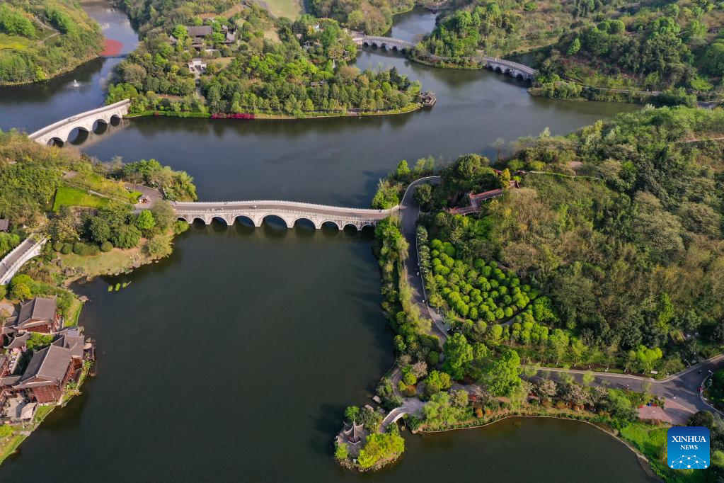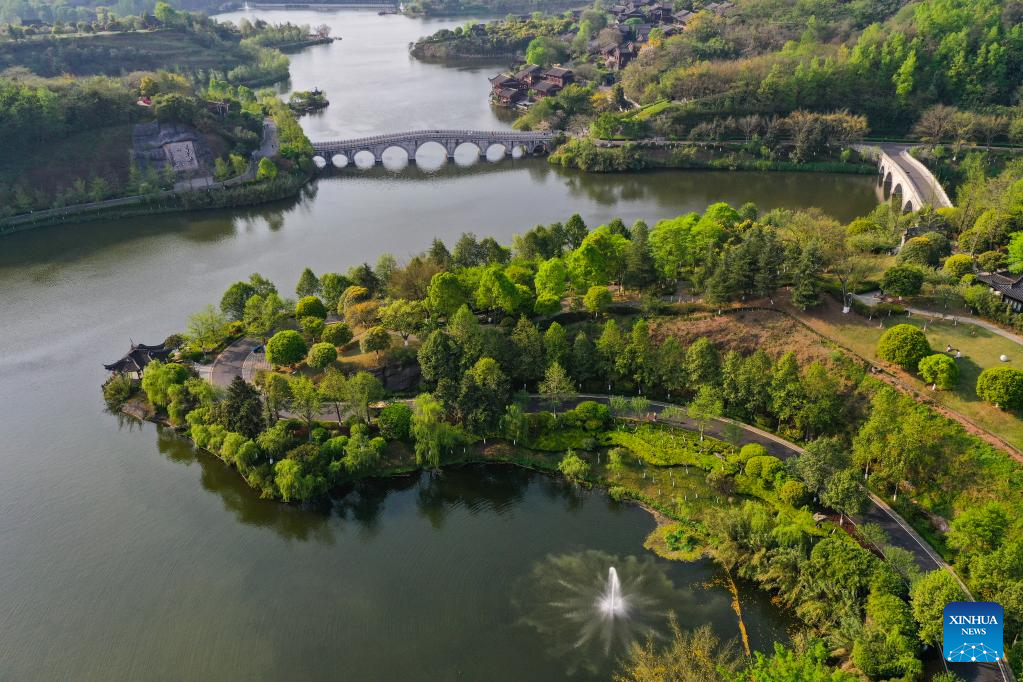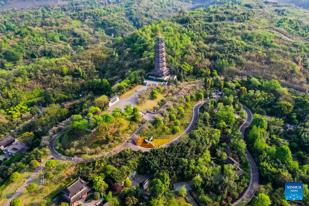 Aerial photo taken on March 19, 2022 shows the Garden Expo park in Chongqing, southwest China. (Xinhua/Wang Quanchao)