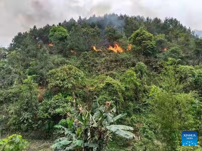 Photo taken with a mobile phone shows the plane crash site in Tengxian County, south China's Guangxi Zhuang Autonomous Region, March 21, 2022. A passenger plane with 132 people aboard crashed in south China's Guangxi Zhuang Autonomous Region Monday afternoon, said the regional emergency management department. (Xinhua)