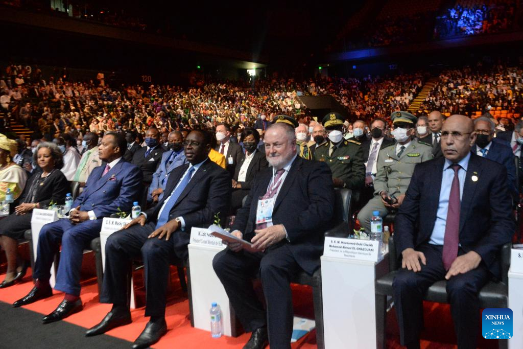Photo taken on March 21, 2022 shows the opening ceremony of the 9th World Water Forum in Dakar, Senegal. The 9th World Water Forum opened on Monday in Dakar under the theme "Water Security for Peace and Development." (Photo by Dieylani Seydi/Xinhua)