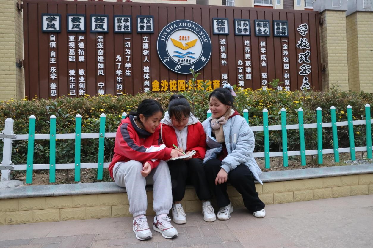 Moshixiwu (middle), a girl of Yi ethnic group in Liangshan Yi autonomous prefecture, southwest China’s Sichuan province, discusses schoolwork with classmates at school. (People’s Daily Online/Song Haoxin)
