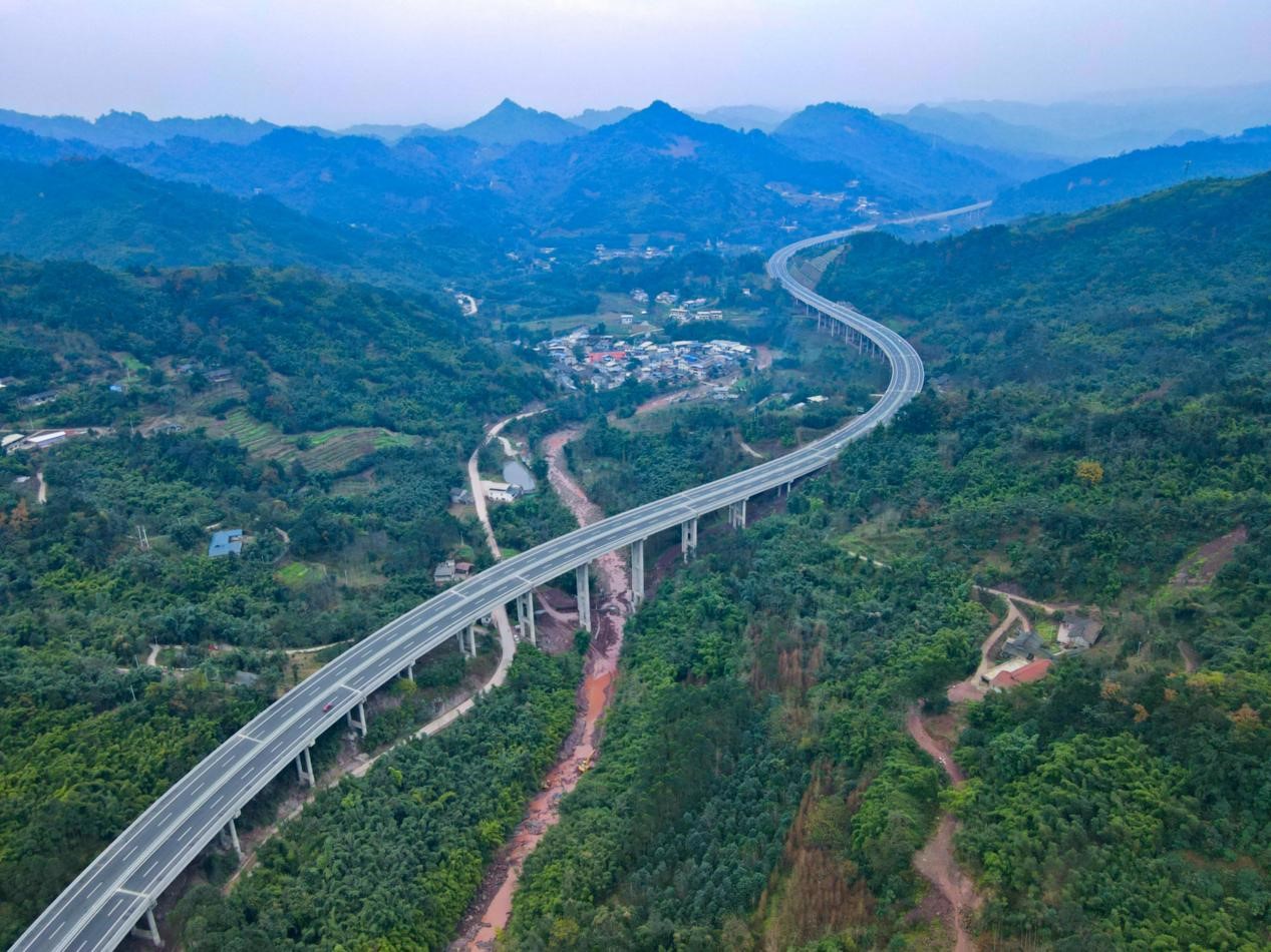 Photo taken on Jan. 1, 2021 shows an aerial view of a super-large bridge of a spur line of the first expressway meandering in the Xiaoliangshan mountainous area in southwest China’s Sichuan province. The spur line, which is located in Mabian Yi autonomous county, Leshan city, Sichuan province, officially opened to traffic in 2021, shortening the travel time between Mabian county and Chengdu city, capital of Sichuan province, to 3.5 hours. (People’s Daily Online/Yang Fei)
