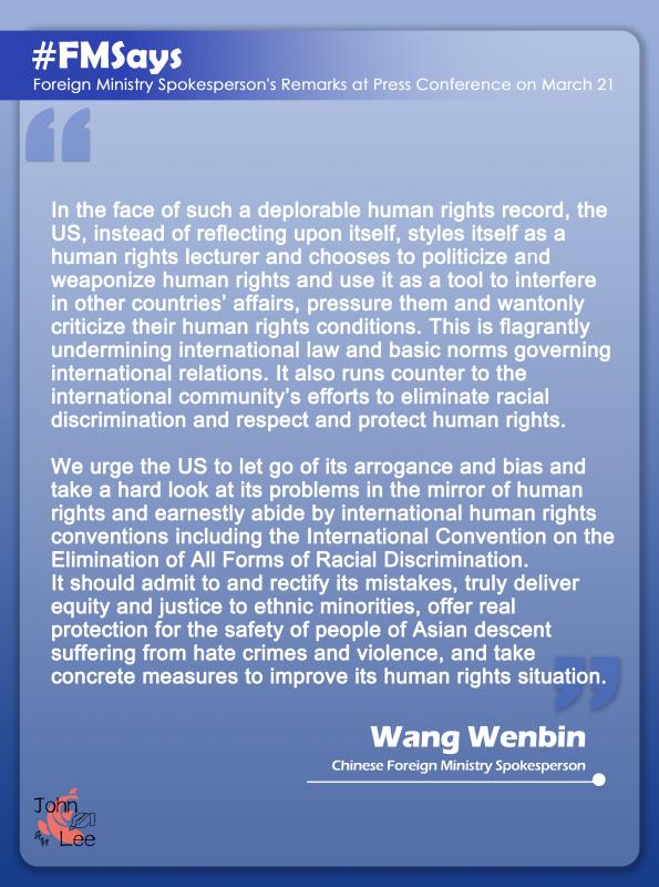 China urges U.S. to put aside arrogance, face up to its human rights problems (2)