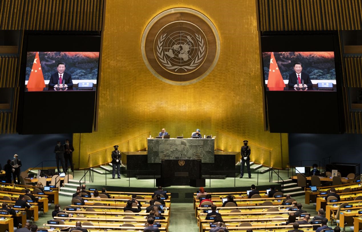 Chinese President Xi Jinping delivers a speech at the General Debate of the 76th Session of the UN General Assembly via video link. (Photo from the website of the UN)