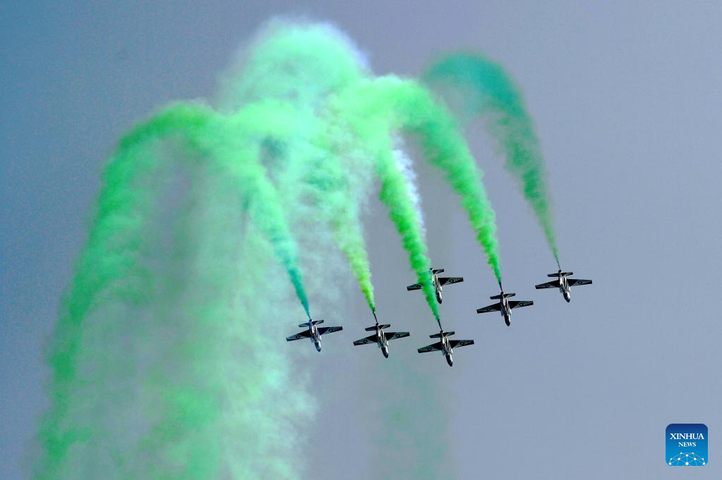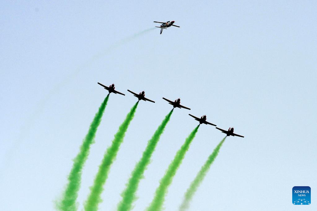 Pakistani jets perform during the Pakistan Day military parade in Islamabad, capital of Pakistan on March 23, 2022. Pakistan Day, also known as the Pakistan Resolution Day or Republic Day, is celebrated annually on March 23. (Xinhua/Ahmad Kamal)