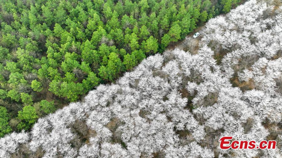 Photo shows the picturesque scenery of blooming cherry blossoms in Anhui, March 20, 2022. (Photo: China News Service/Li Xiaohong)