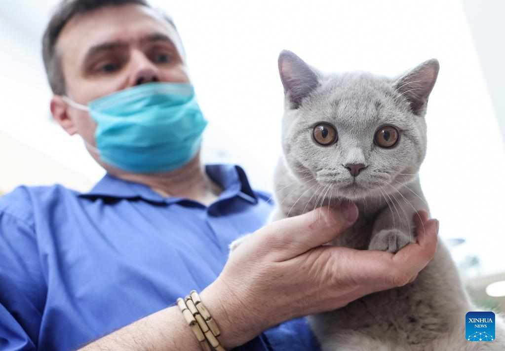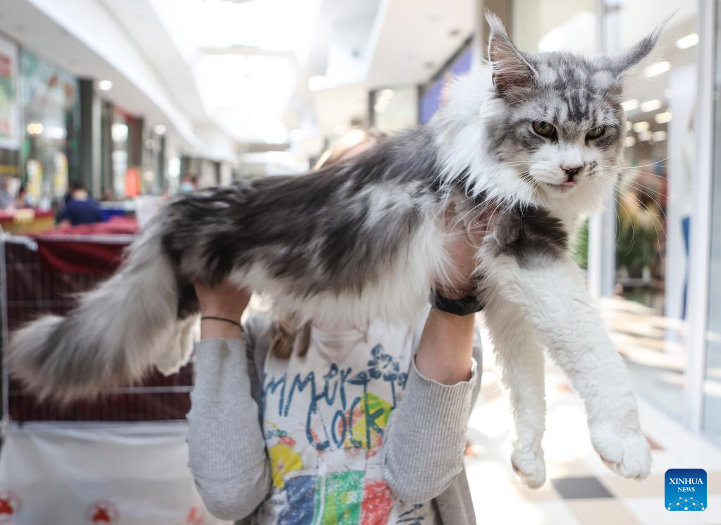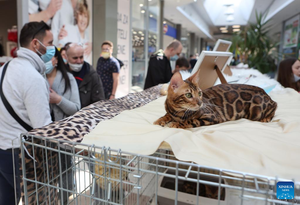 A cat is displayed at a weekend cat show in Zagreb, Croatia, on March 26, 2022. (Marko Prpic/PIXSELL via Xinhua)