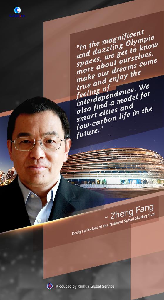 Zheng Fang holds the same view on the importance of Olympic architecture for humanity. "In the magnificent and dazzling Olympic spaces, we get to know more about ourselves, make our dreams come true and enjoy the feeling of interdependence. We also find a model for smart cities and low-carbon life in the future," he said.