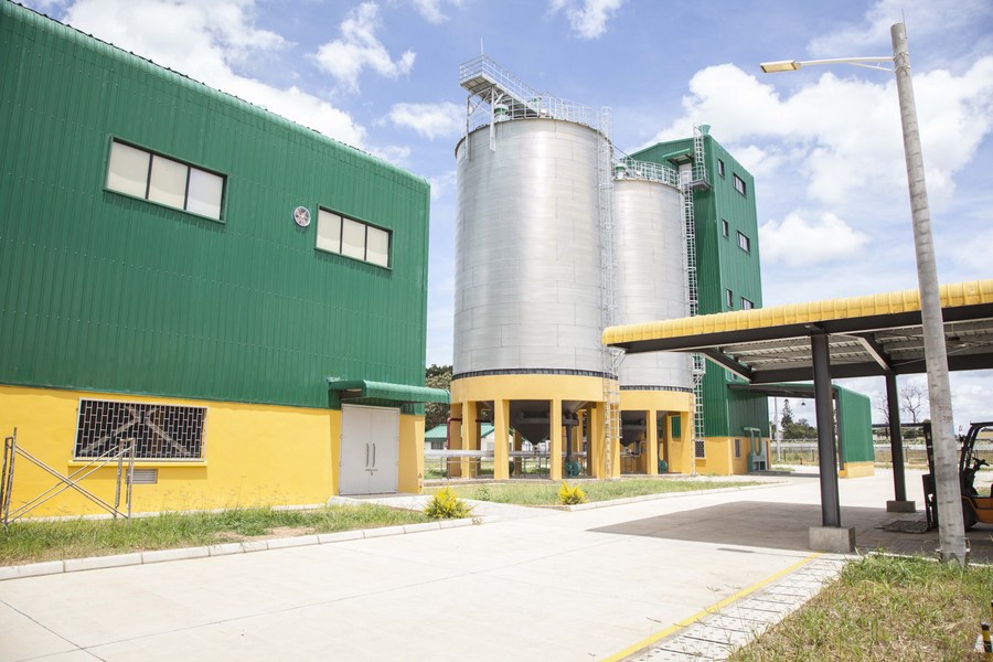 Photo shows a China-aid milling plant in Lusaka, Zambia, on March 9, 2022. (Photo by Martin Mbangweta/Xinhua)