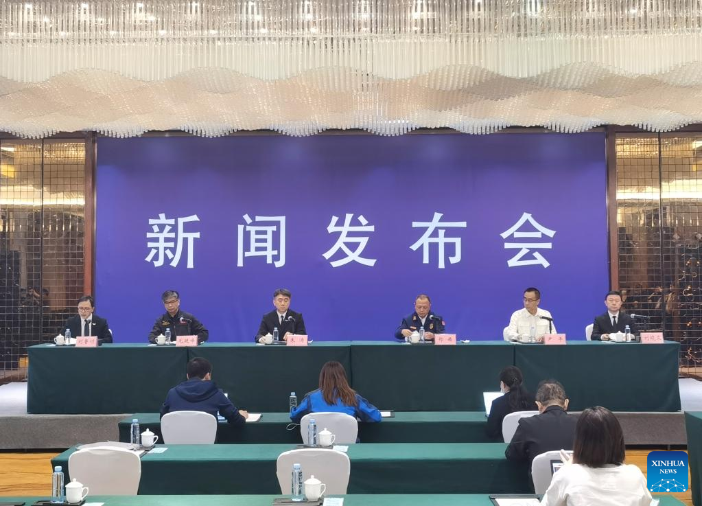 Photo taken on March 27, 2022 shows a press conference on the China Eastern Airlines Flight MU5735 aircraft accident in south China's Guangxi Zhuang Autonomous Region. (Xinhua/Huang Qinggang)