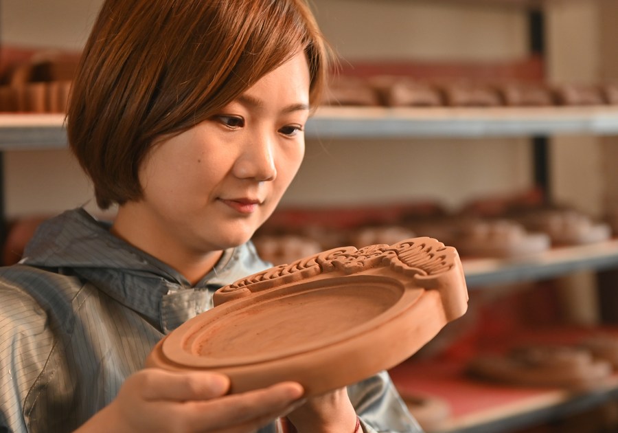 You Xiaoxiao from Xin'an County of Luoyang City in Henan Province is the representative inheritor of the Yellow River Chengni inkstone. She learned Chengni inkstone making techniques from her father after graduating from university. She is the sixth generation of the family to inherit the making skills of Chengni inkstone. Speaking of future plans, You Xiaoxiao has an aspiration to innovate the traditional technical methods and designs to further promote the art and give people a better understanding of the Yellow River culture. (Xinhua/Li An, Li Jianan, Xu Jiayi)