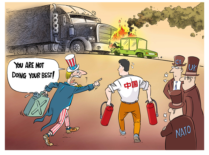 While pointing fingers at others, the U.S. should ask itself these questions: Who pushed for NATO’s expansion eastward at five different times? Who has escalated tensions and allowed the situation to spiral out of control? The U.S. isn’t just an innocent bystander in the Ukraine crisis. If someone keeps pouring fuel onto the fire while accusing others of not doing their best to put out that fire, such kind of behavior is clearly irresponsible and disgraceful.