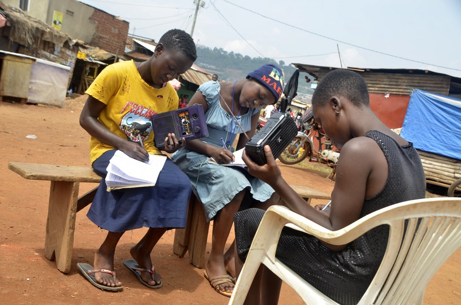 Students attend an airing lesson in Kampala, Uganda, on Aug. 16, 2021. (Photo by Nicholas Kajoba/Xinhua)