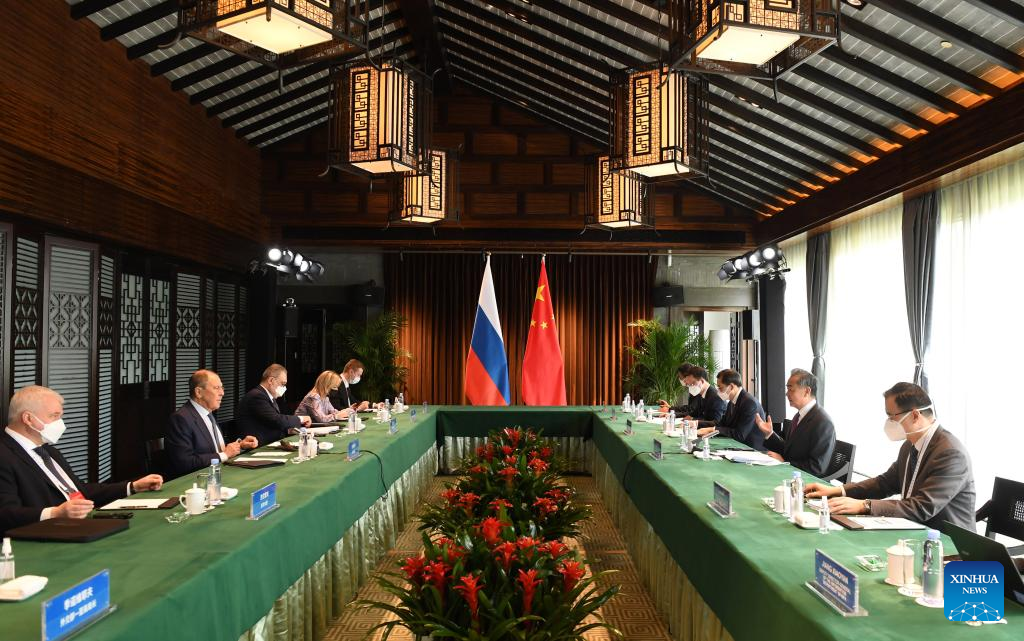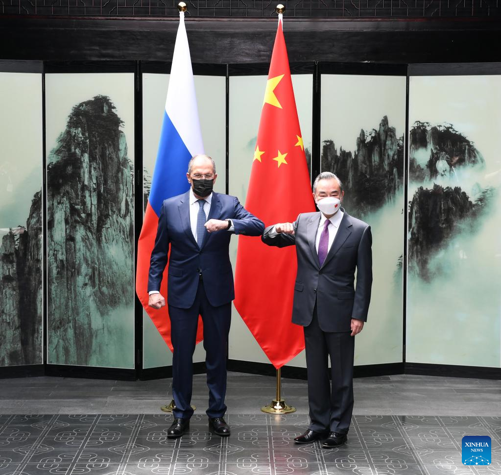 HEFEI, March 30 (Xinhua) -- Chinese State Councilor and Foreign Minister Wang Yi held talks with Russian Foreign Minister Sergei Lavrov on Wednesday in Tunxi, east China's Anhui Province, and both sides pledged to strengthen bilateral ties.
